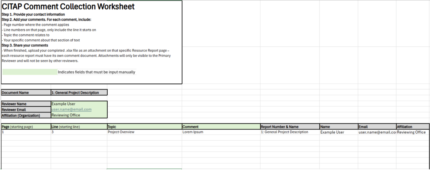 - Download the Comment Capture Spreadsheet for the corresponding resource report